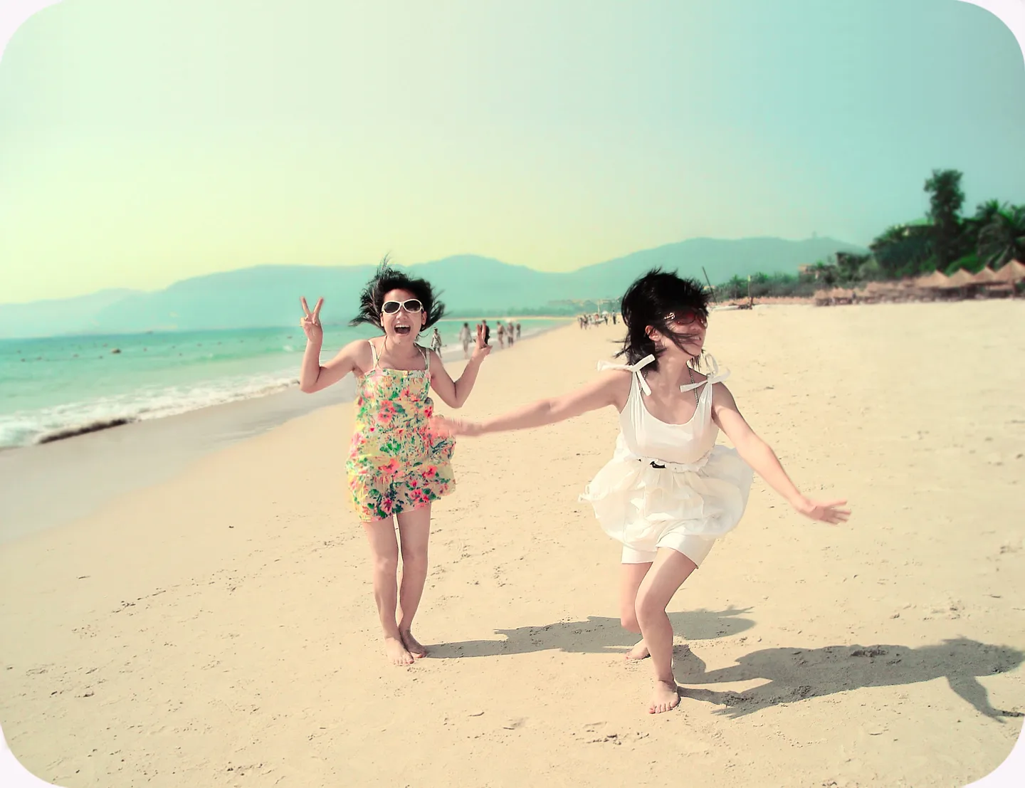 把肤色调亮、背景朦胧、突出主人公-把白色衣服的单独做出来,轻微艺术化,典雅唯美,欢悦明快的 谢谢