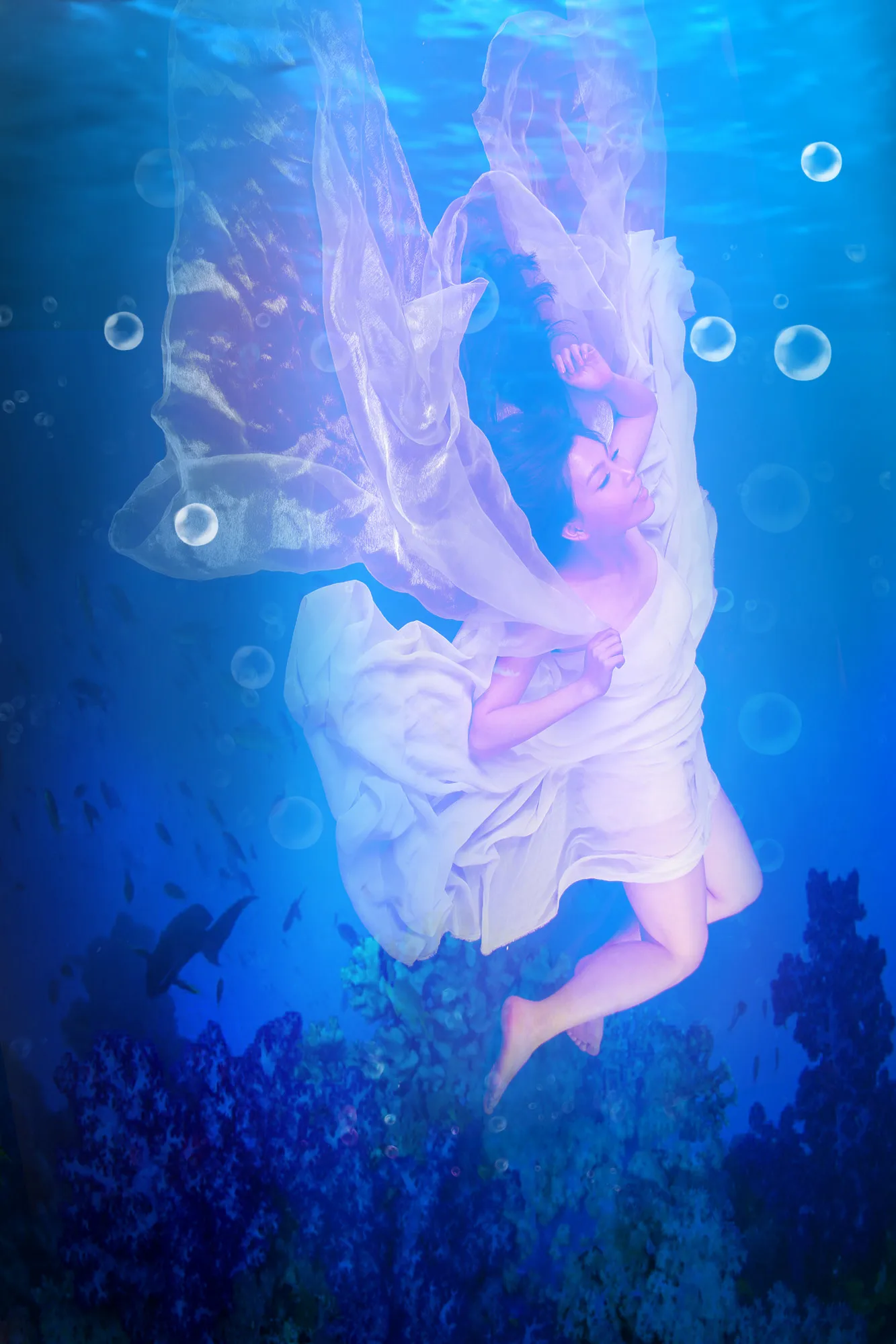 这个水下还不错,呵呵,就是人物脸部上方可以加多点小气泡,呵呵。人物可以突出点,不错这个还是不错,好看,呵呵。