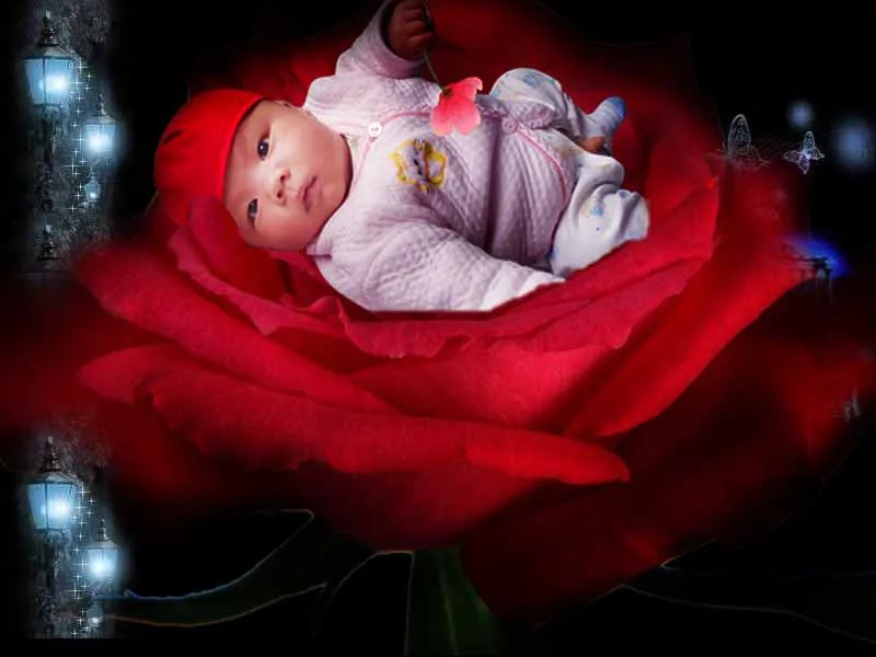 好可爱的孩子,有花的宠爱