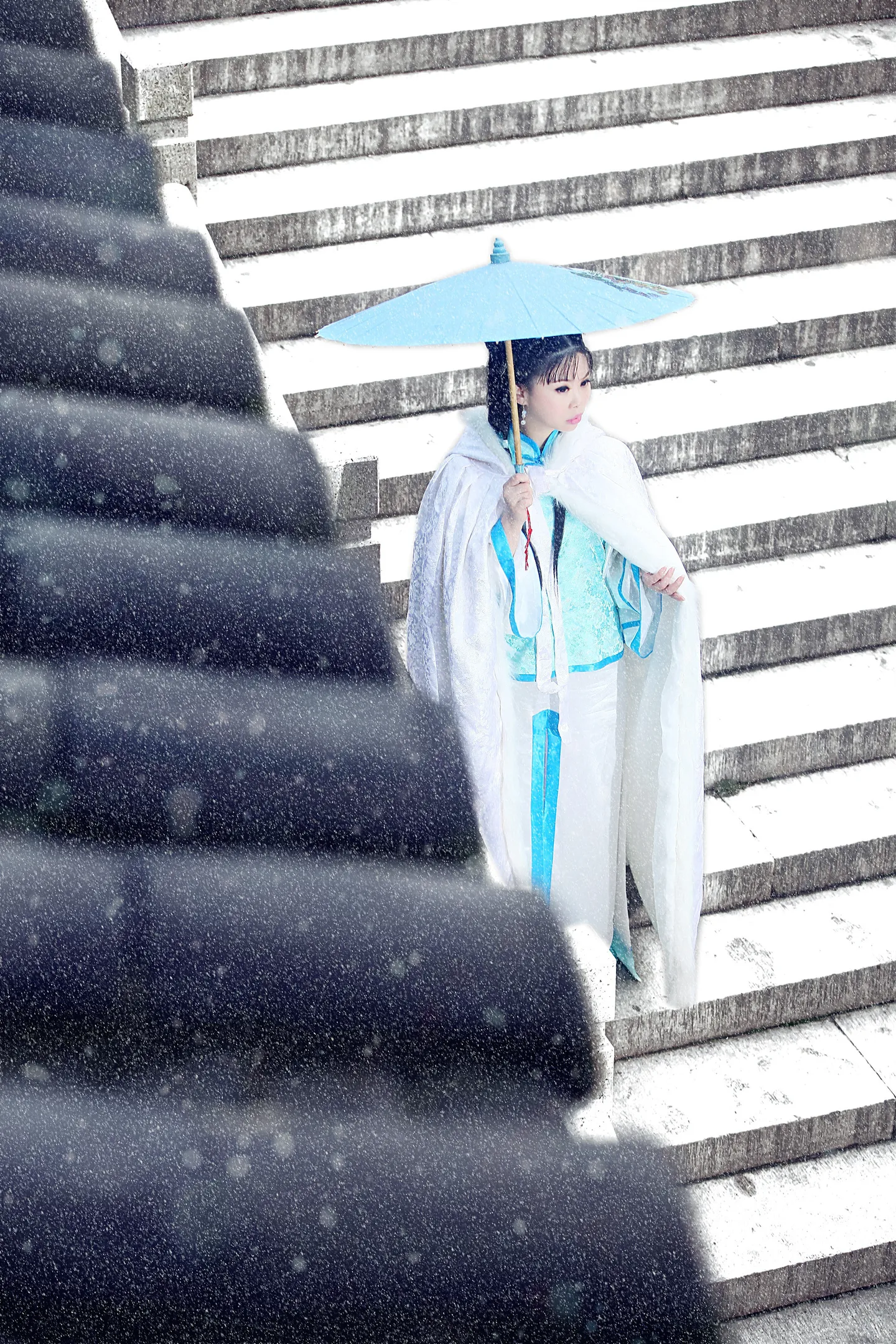 处理的挺好呀。台阶上都是雪了。还有脚印的感觉!加油