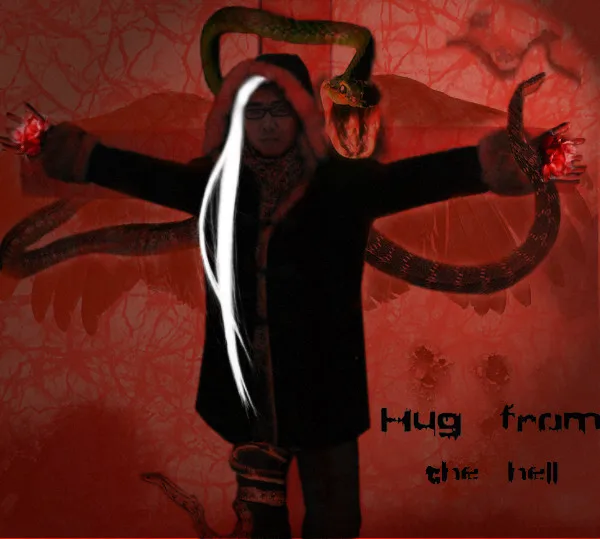 ...其实是手持两朵红花,身绕三条小蛇,背巨翼,钉十字的。。白发魔男
