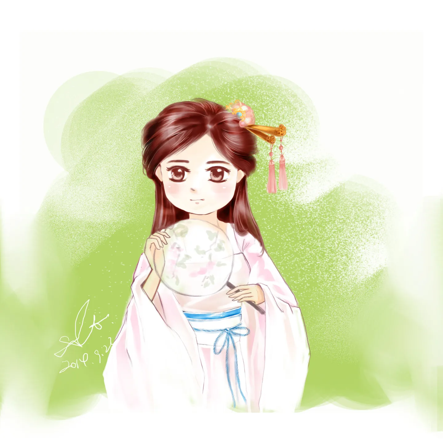 包子脸 眼睛很萌 扇子的花也好细致~