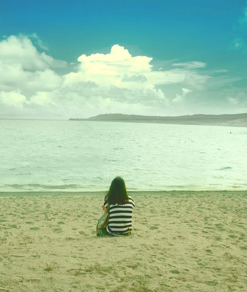 孤独的望海人~ 颜色不知道为什么偏白了~天很蓝的~海水也是~ 怎么好看怎么改!谢谢啦~ 用途:娱乐