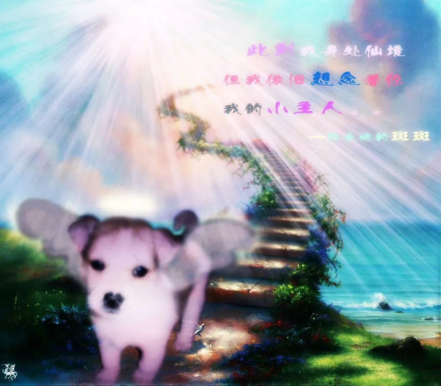 用途:家庭纪念 斑斑上天堂,离开我们了。 我要它变成天使狗狗,加双翅膀行吗?要可爱点的! 花点心思帮我PP吧,先谢了。。。