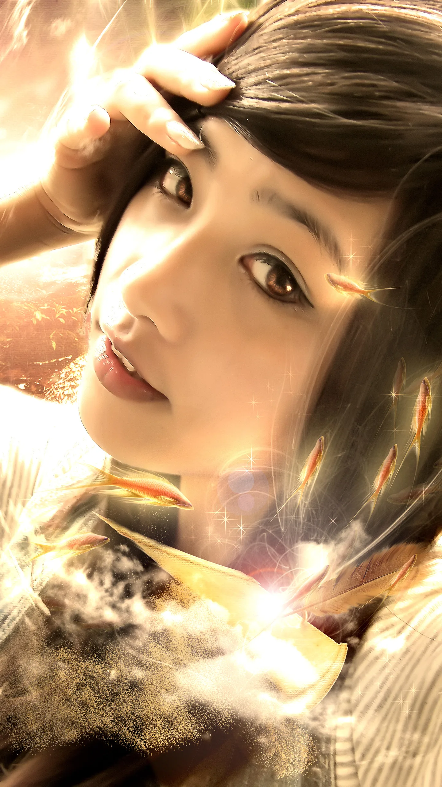 金色的海岸线 暮色开始升华 属于鱼儿的世界 谁能读懂她们的心语 而又为谁的孤单在狂欢