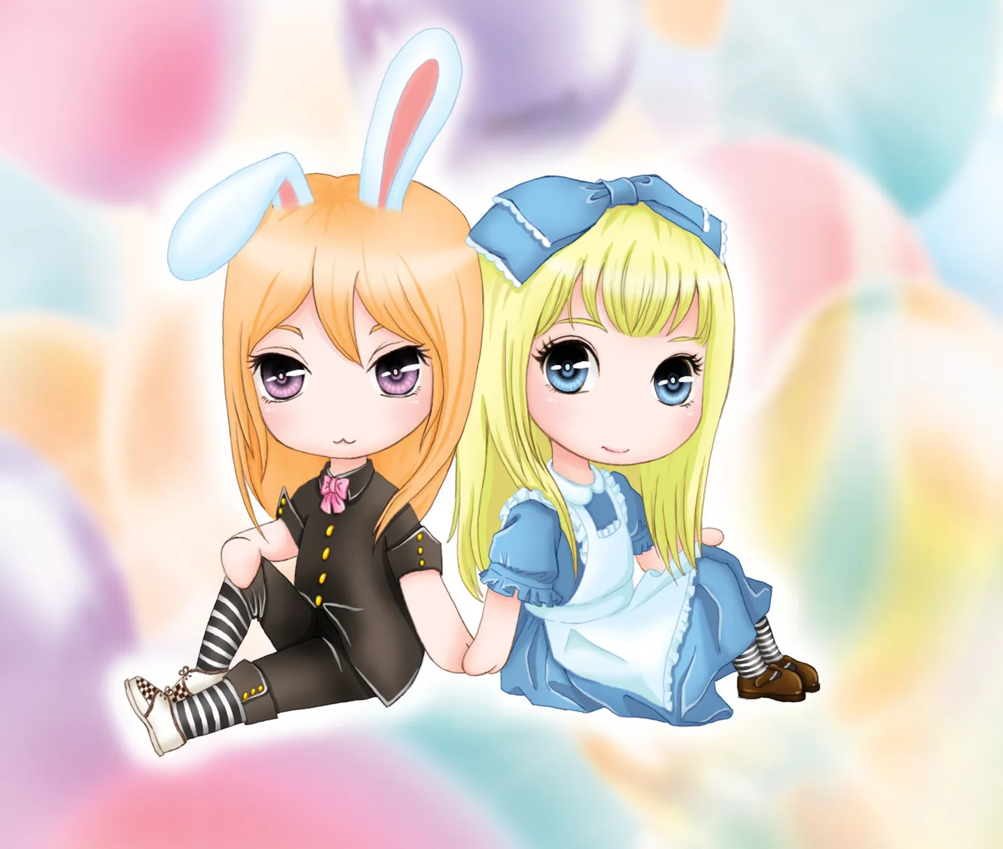 颜色不错的,你说的耳朵衔接不够自然,还有以后可能出现的问题- -个人觉得在“投影”上,试着把插耳朵的周围一圈加深(耳朵后面的要比前面的更深)恩……不仅是耳朵啊~~~蝴蝶结落地的地方衣服,头发……反正注意投影就是了
