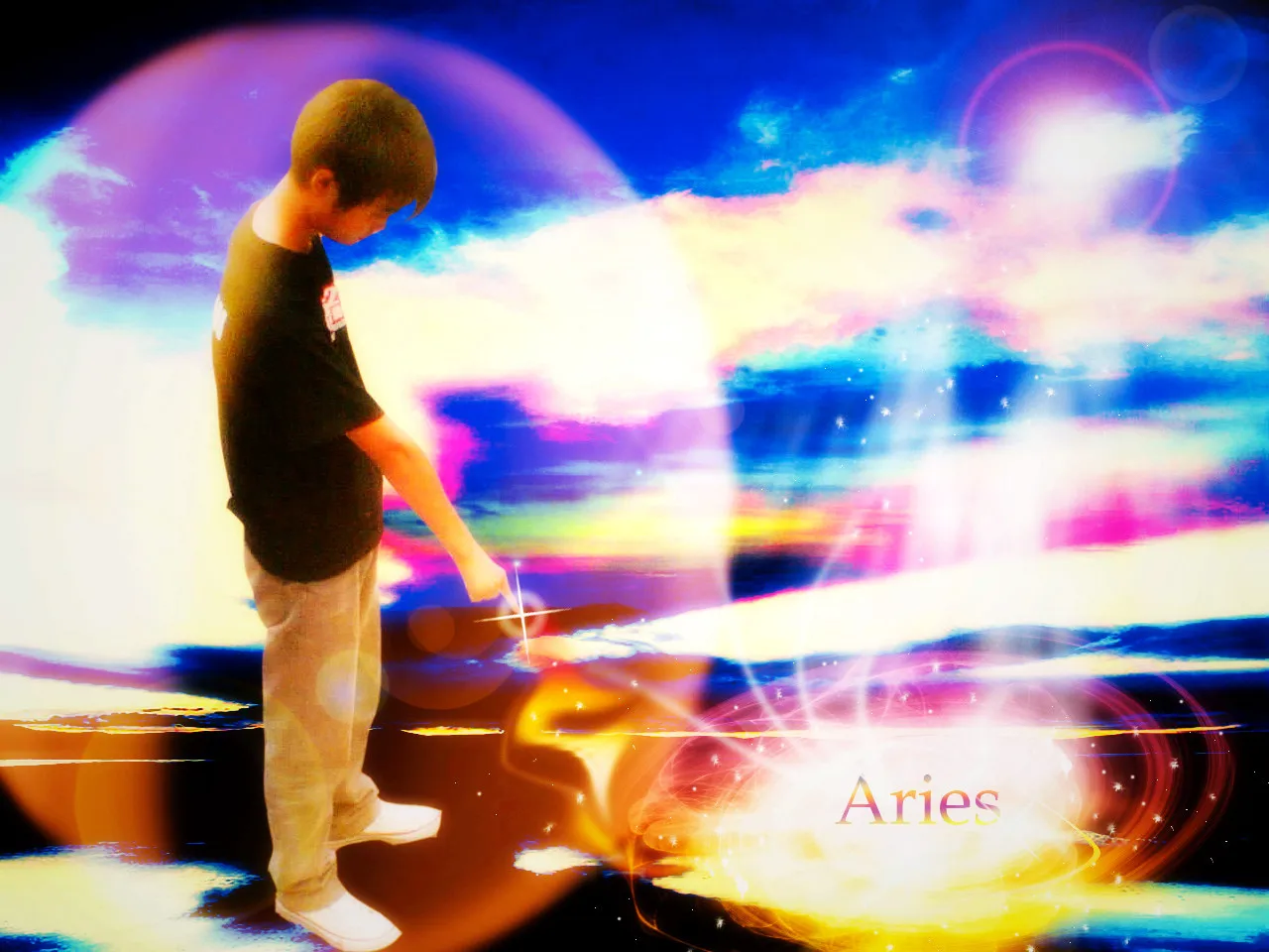 换个背景梦幻的 在手指 指的地方搞上一道魔光加上Aries我的英文名{我手指指的地方} 相信你可以搞得定..