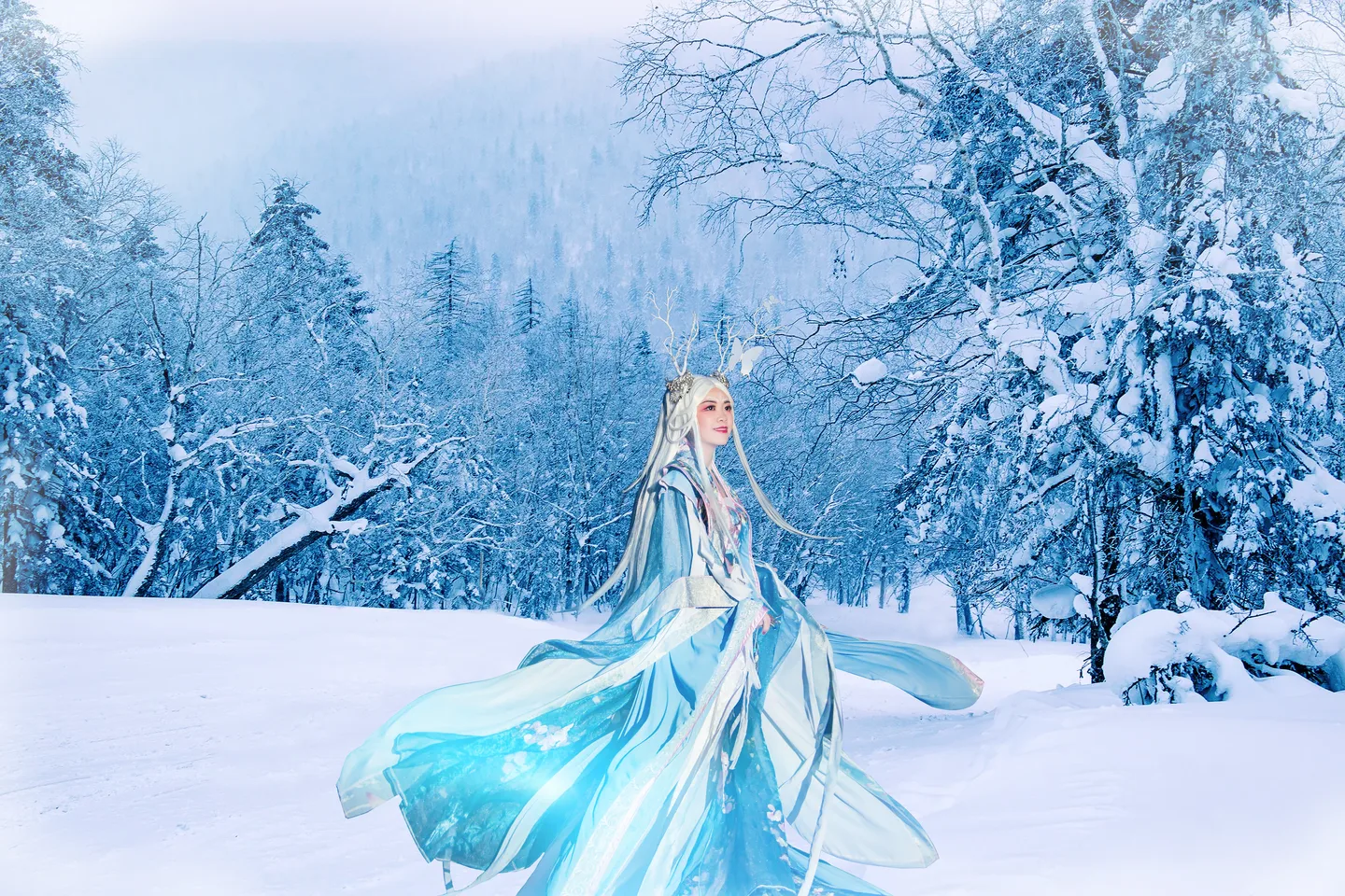 谢谢彧晴儿大神。。。这张作品好看极了呢。。。么么哒!夜景变白天毫无违和感呢,雪地配这蓝衣服真是棒棒哒 (表情) (表情)