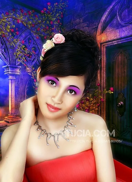 美化人物脸部:瘦下脸,化个浓艳的妆吧,做出<金大班>中范冰冰的感觉 给人物换一个好看的背景 化个深紫色的眼影 要冷艳眉惑的感觉,请勿刷图~整体造型请大师们定了~thanks!!