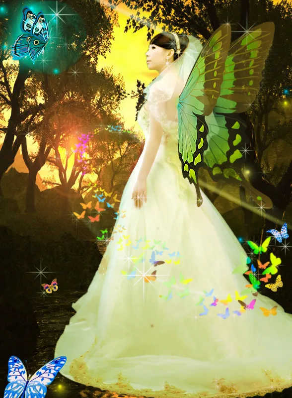 背景换一下,很喜欢你做的蝴蝶背景,我想在有对蝴蝶翅膀,脸部就不要动了,我不要大眼睛,其它的都可以改,谢谢师傅 用途:娱乐 基调:典雅唯美 艺术化:深度艺术化 背景:朦胧化