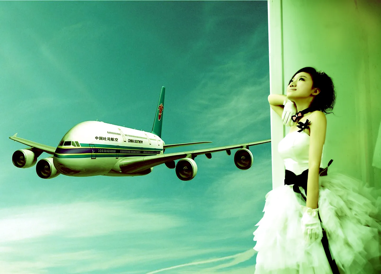 喜欢这图的创意,整体感觉也很好,色彩,对人物的处理无可挑剔啦,飞机上还有字