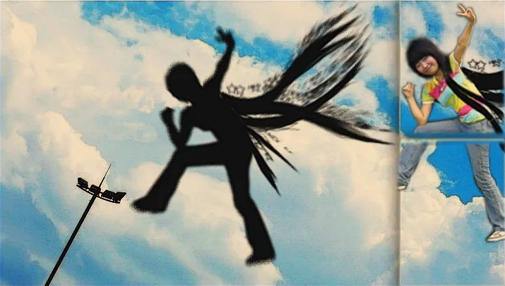 哈,还蛮有想象力的,飞人的影子飞出去了