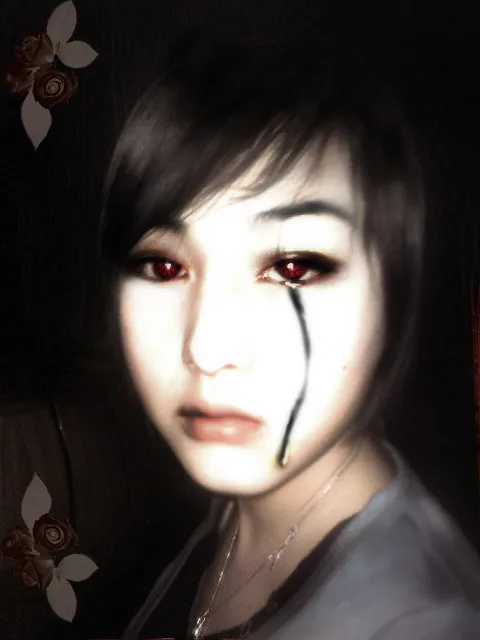 <高手来接招了>~~~! 如图,严重的曝光过度了,晚上拍的,有点难度哦,这张图片,挑战你的极限! 基调:严肃冷酷 背景:换个科特斯感觉的,不要太夸张,主要是突出人物主体,以黑为主调。 眼睛:瞳孔色要变下,最好流点黑色泪水,人物整体的大小还不是不要变,ok!(注:就是想要一种黑色调的感觉,期待你的惊喜) 谢谢!赶明请你吃重庆火锅,霸道惨了!