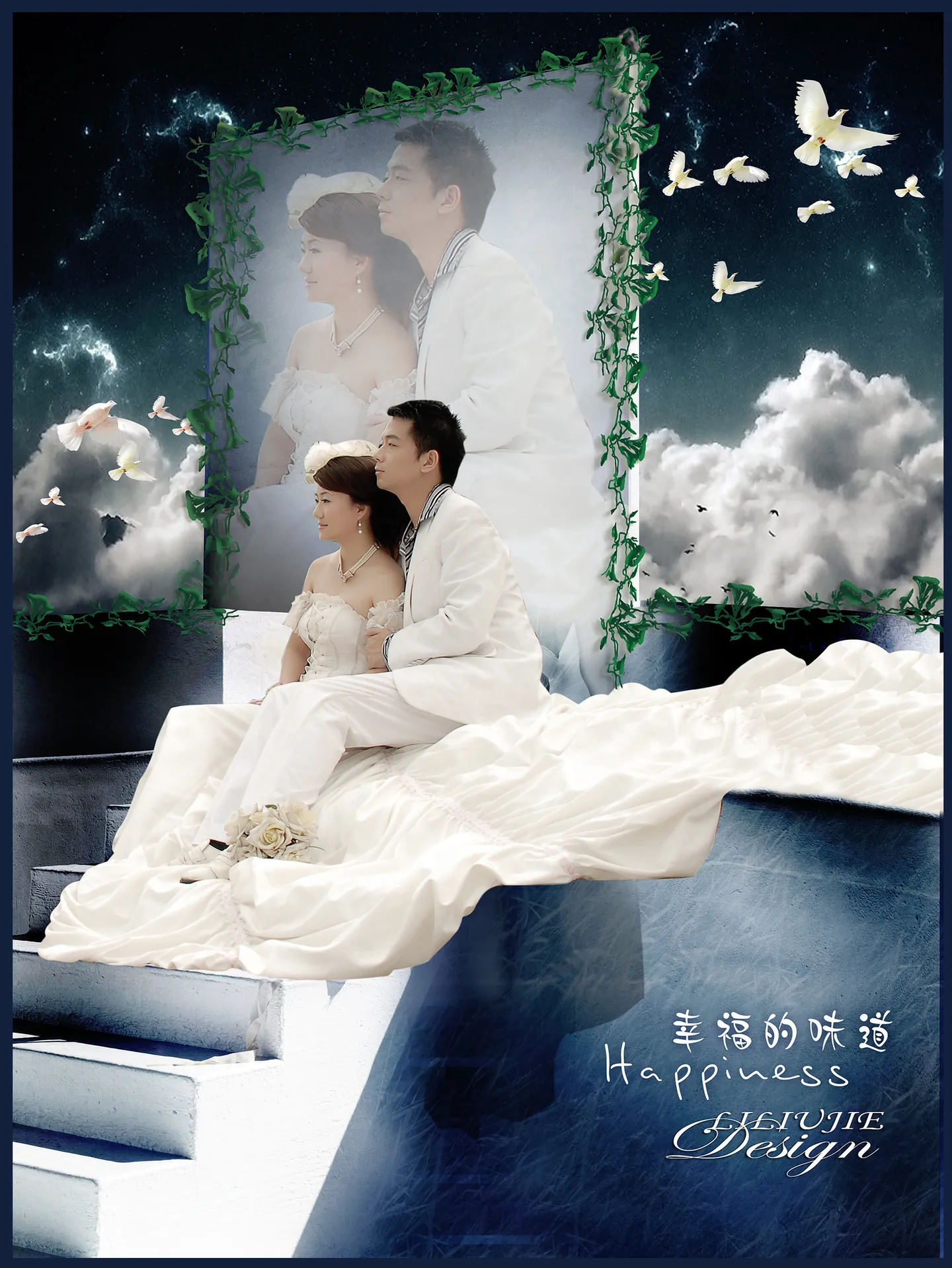 这张照片本来是我期望值最高的,但是影楼没有设计好。请吐司的设计师们帮帮忙吧。想要3D动漫的感觉,尽可能唯美一点。背景可以全部换掉也没有意见。