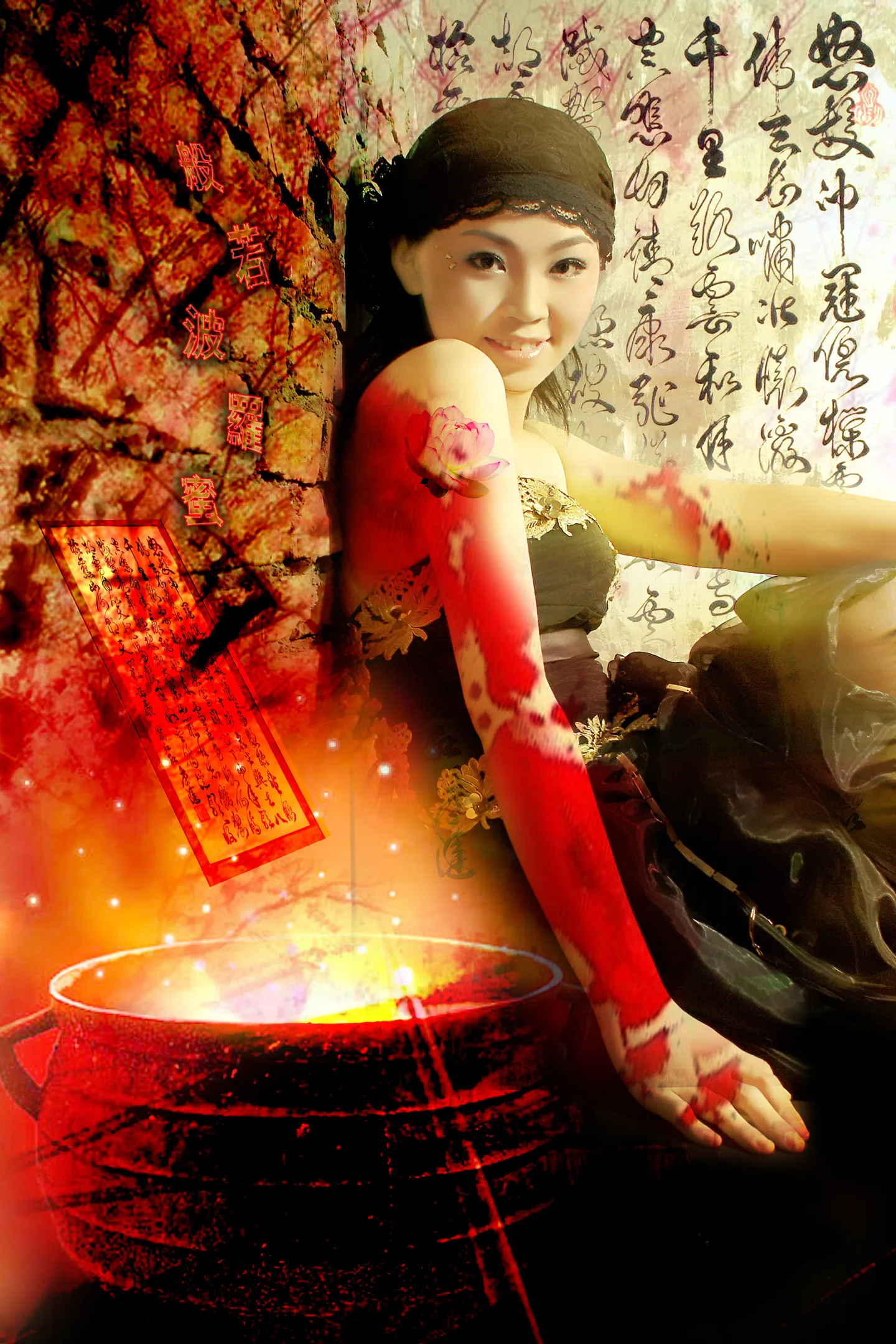 好强大的视觉冲击呀,赞呀赞,最喜欢肩下方那朵淡粉芙蓉