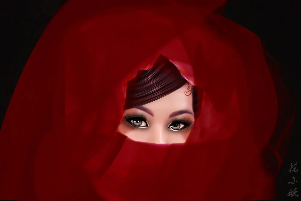 原来稍稍有点俗的粉色纱被换成大红的盖头~~加上女主妖媚的一瞥~~~