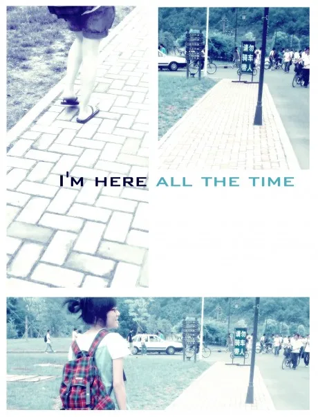 修饰一下背景和人物 要lomo风的图~~ 类似 http://hiphotos.baidu.com/princess颖123/pic/item/04bb879b60bb46aac8eaf44b.jpg 的效果~ 背景可以稍微裁掉一点 然后加上 I'm here all the time. 的艺术字~ 基调:欢悦明快的