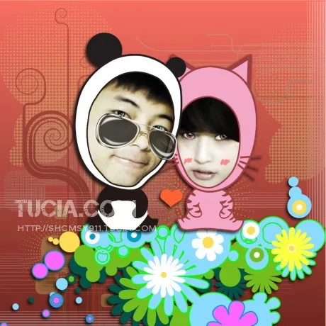 脸部稍微美化下 保持真实性 最好能帮我弄成手绘或者卡通的 男生有熊猫的特色 女生有猫咪的特色就更好了 但不强求. 别的创意 您自己看着办.先谢.