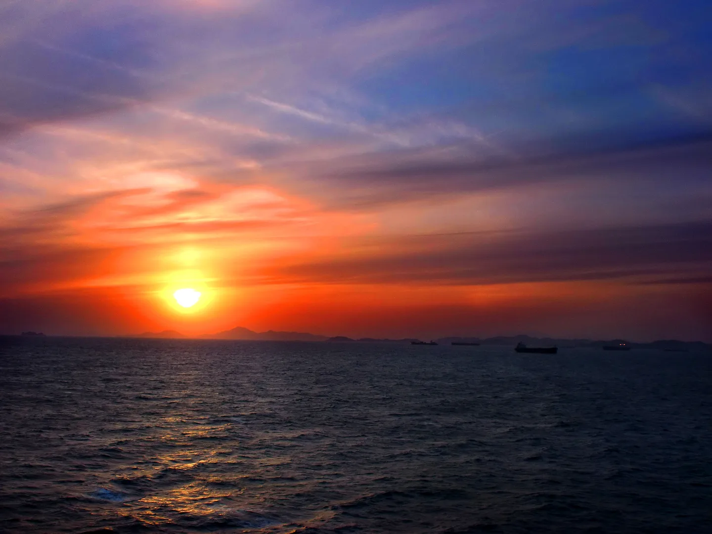 邮轮上拍的日落吧 天空线条还行 就是灰了点 求调色 色彩层次感强 美好 勿刷