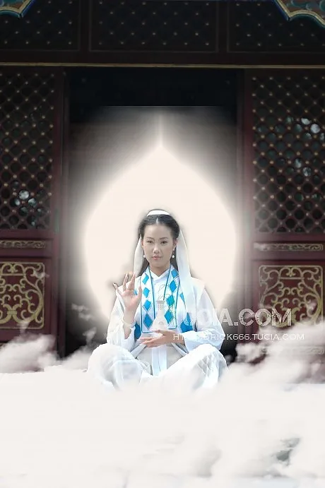 美化人物脸部 给人物换一个好看的背景 用途:娱乐 基调:典雅唯美 艺术化:轻微艺术化 P.S.:这幅照片的动作是观音的造型,可以加净瓶,莲花台,光圈之类的(总是像观音就好)