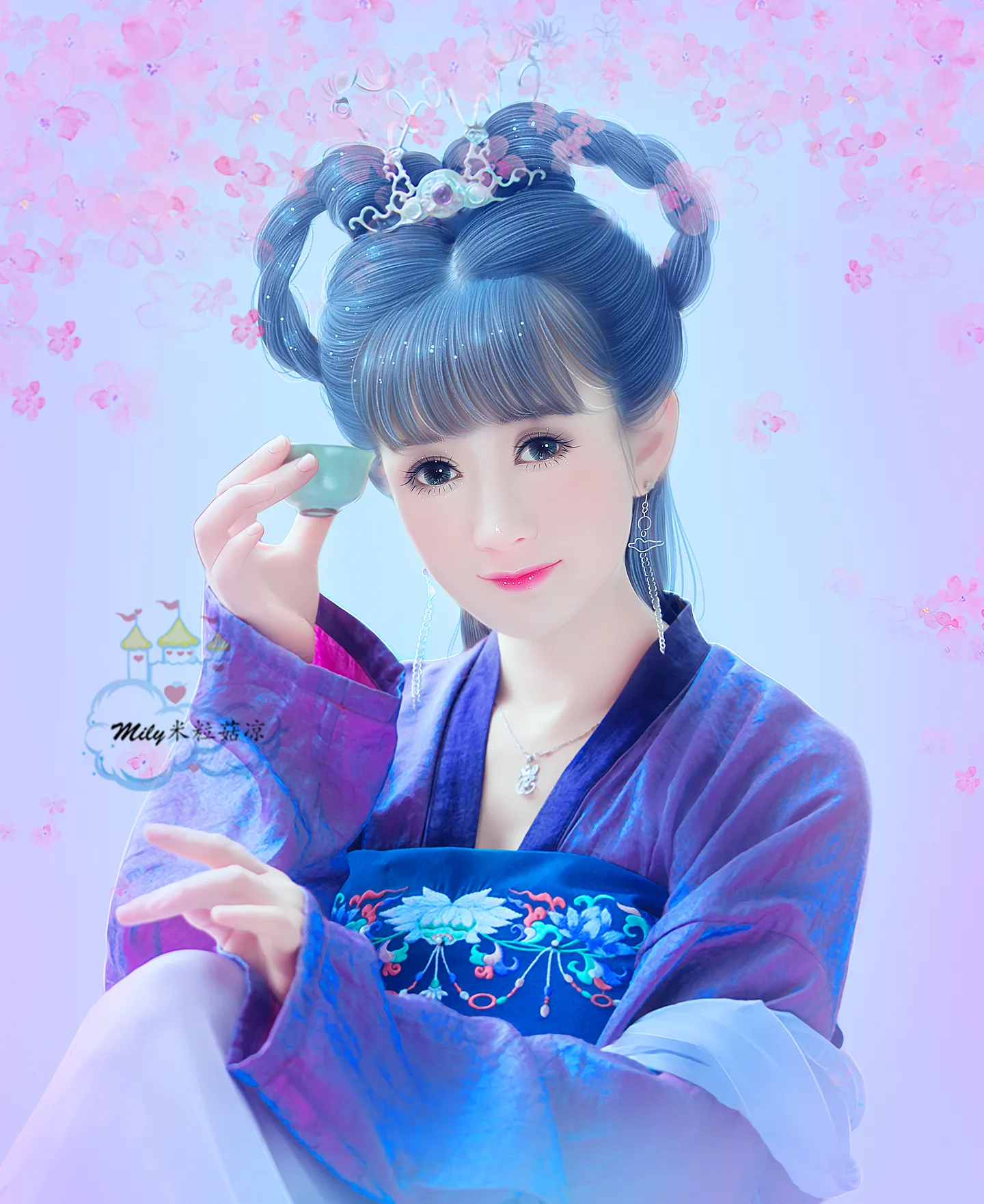 好漂亮好漂亮啊!米粒画的太美了,好喜欢啊!看上去好温柔好甜蜜,亮晶晶的,还加了粉粉的花。么么么么米粒,谢谢! (表情) (表情...
