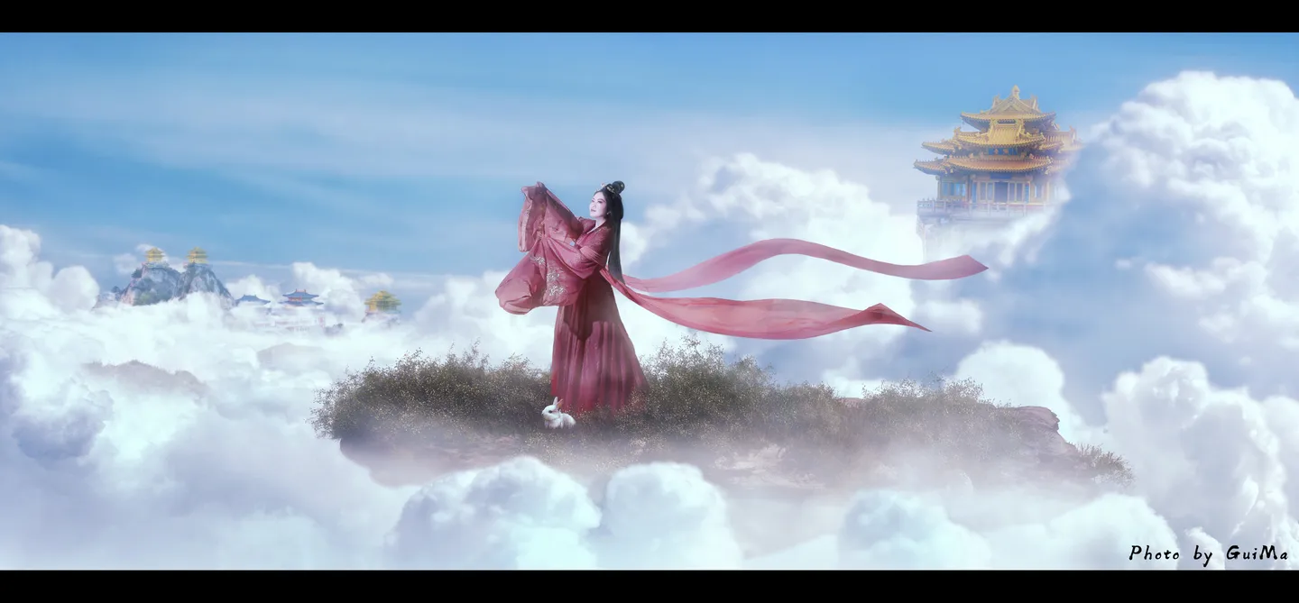 琼楼玉宇,仙气飘飘啊。好美的仙境。脚下的玉兔呆萌又可爱。喜欢啊。大神自己造景太牛逼啦