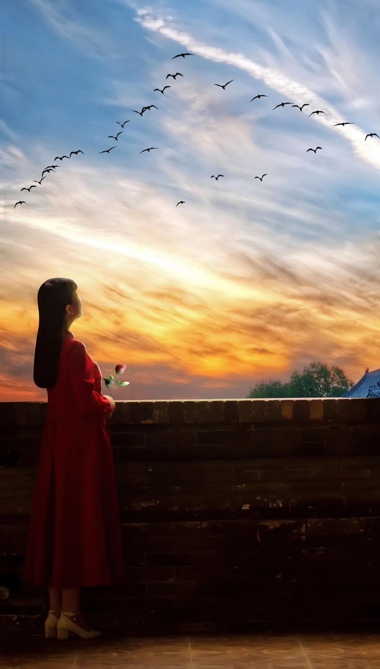 好美啊好有意境~~~好漂亮的夕阳,手里还拿了玫瑰花呢,创意好赞~~~谢谢飞雪大大!