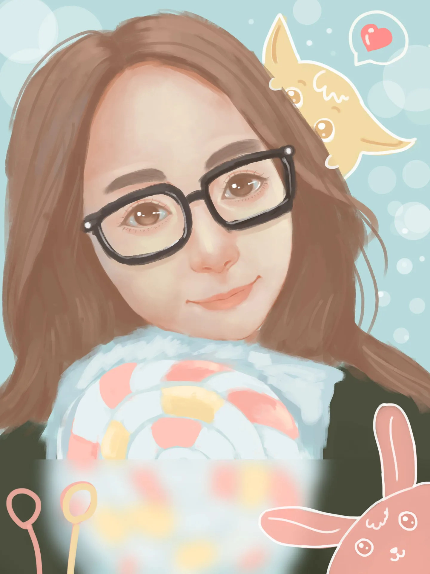 哈哈哈~萌萌哒!!!!就想要这种感觉呢!!谢谢小颜!!!!!~~ (表情) (表情) (表情) 一个小小的建议~额头处显得略大~若能补点头发...