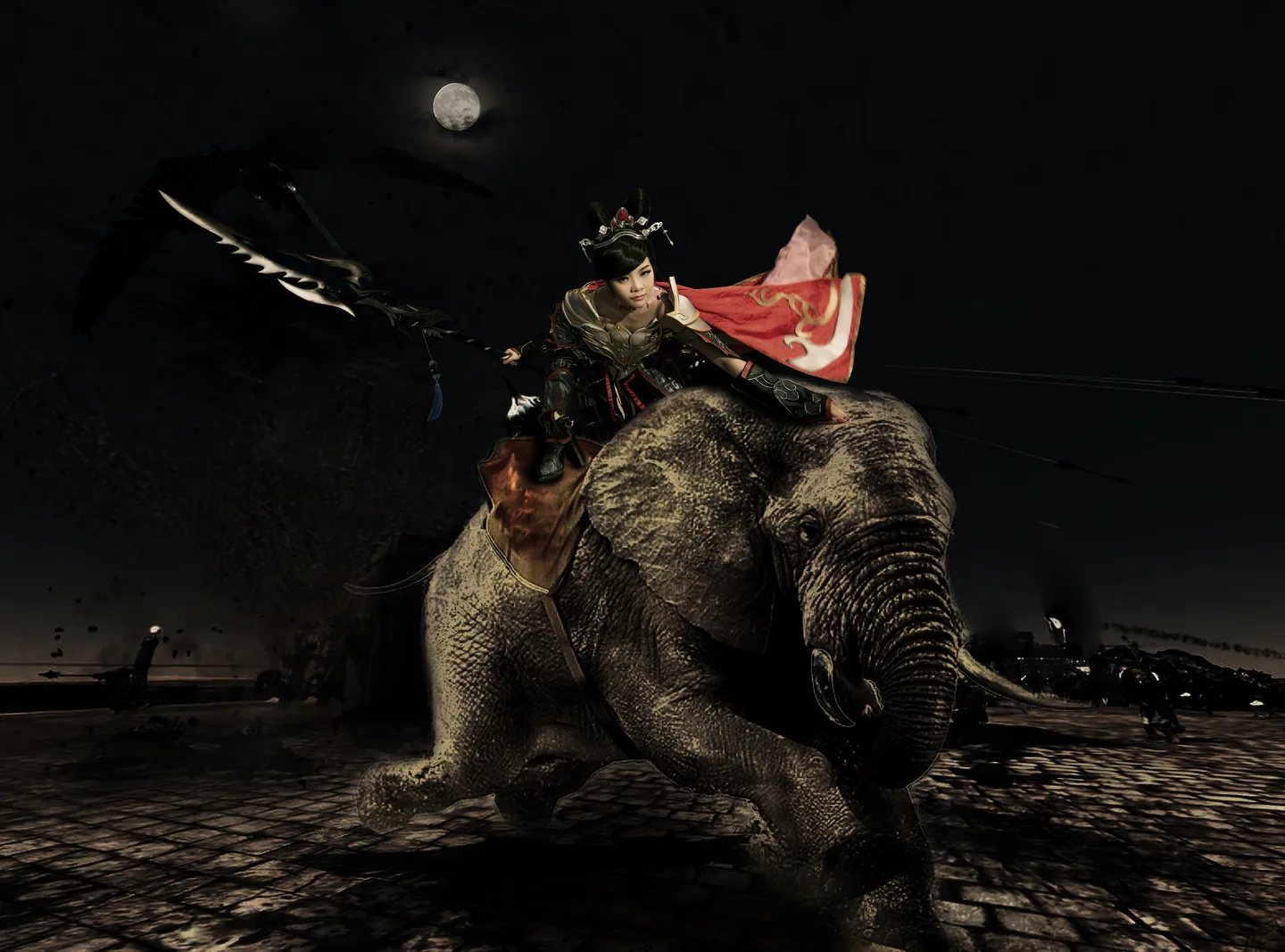 (表情) (表情) (表情)飞雪大神辛苦了,感激不尽!这张合成图真是霸气侧漏,感觉就是骑着战宠在冷月黑夜中的战场里厮杀的女将军啊...