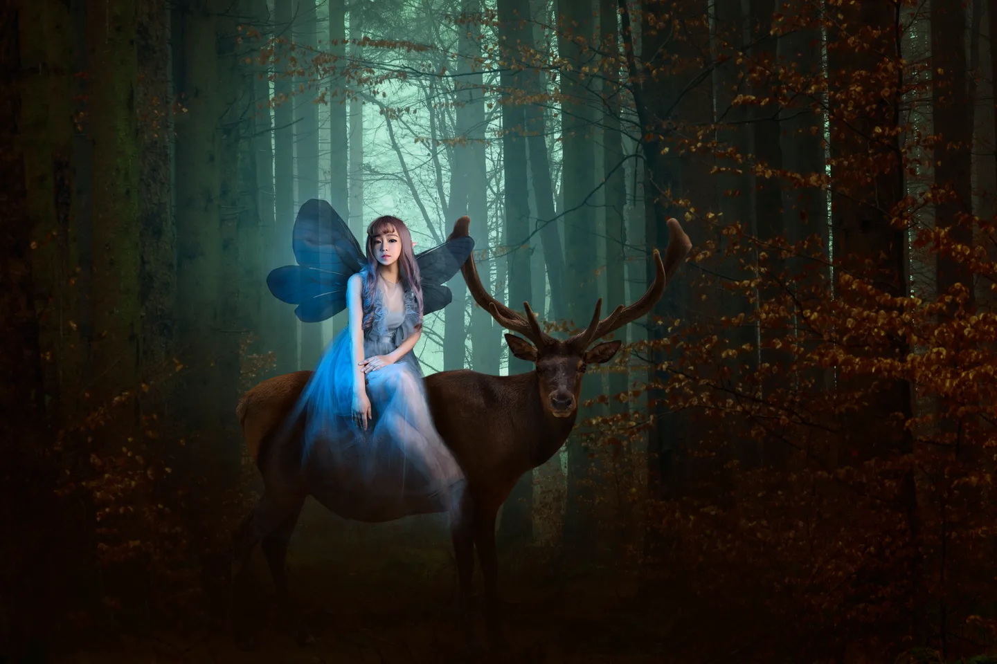 右边蝶翼放在鹿角后面效果应该更棒。