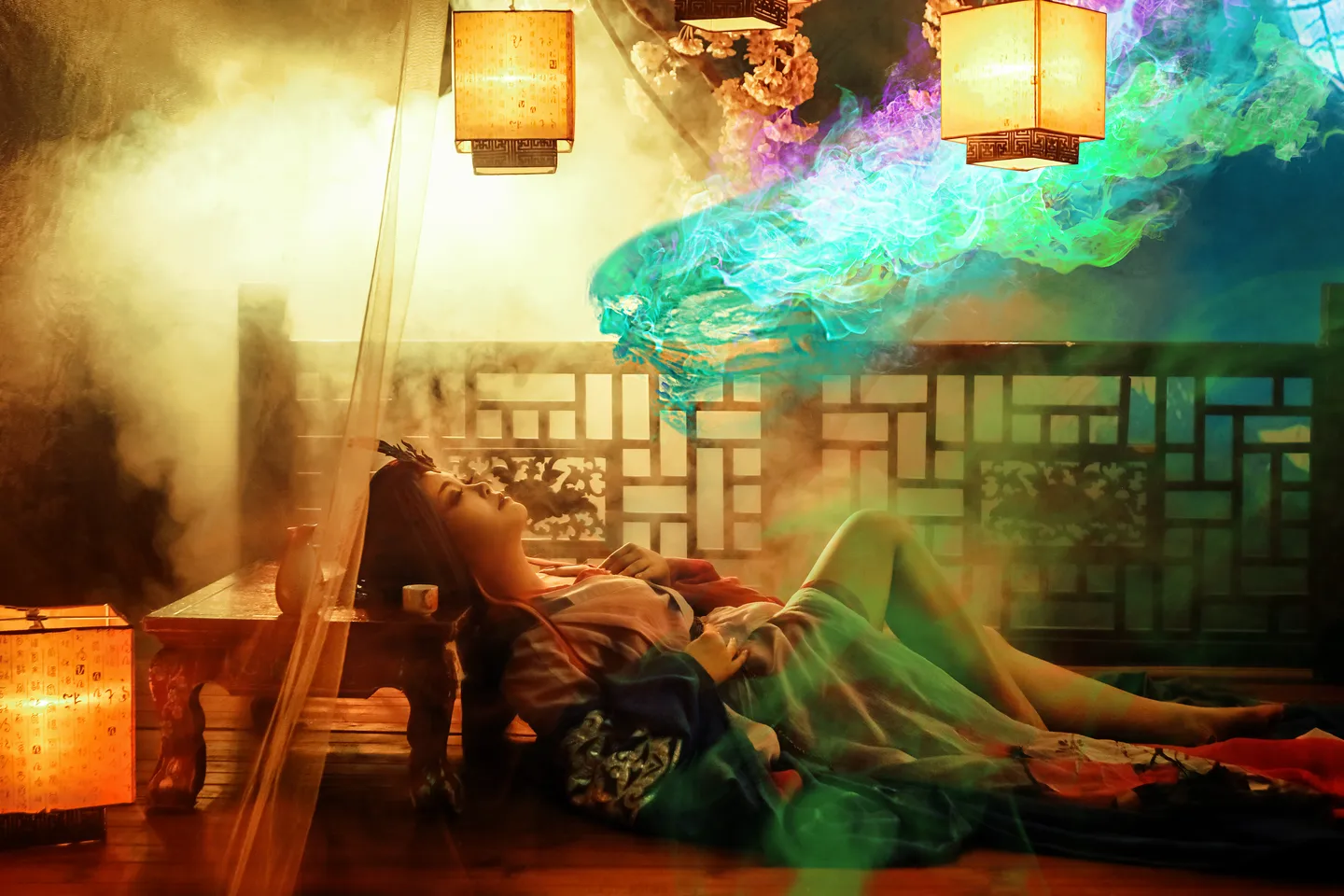 谢谢大神~~光影修得真美,人物这动作配上绿紫色烟雾特别像是在吸食精气的妖怪哈哈哈
