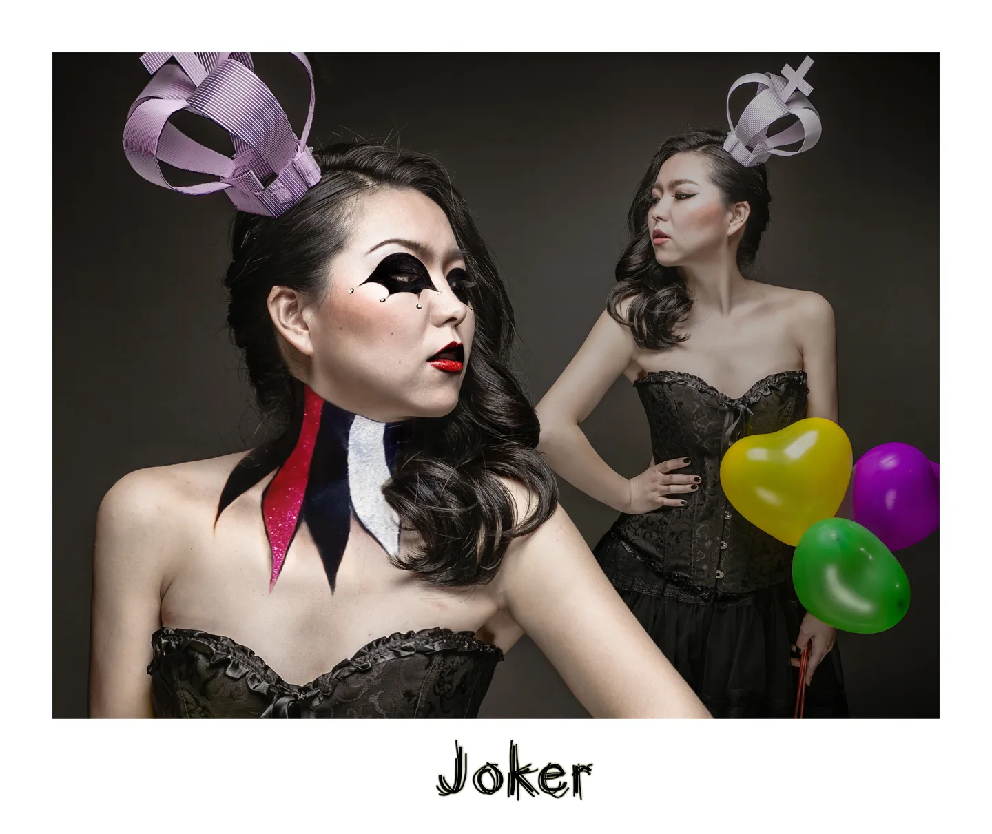 表白窘窘酱,这么快就修好了,这个造型本来确实是按照JOKER扑克牌拍的,一开始精修还给我做了扑克牌的正反那种来着,发现做出来牌太长了,失败了