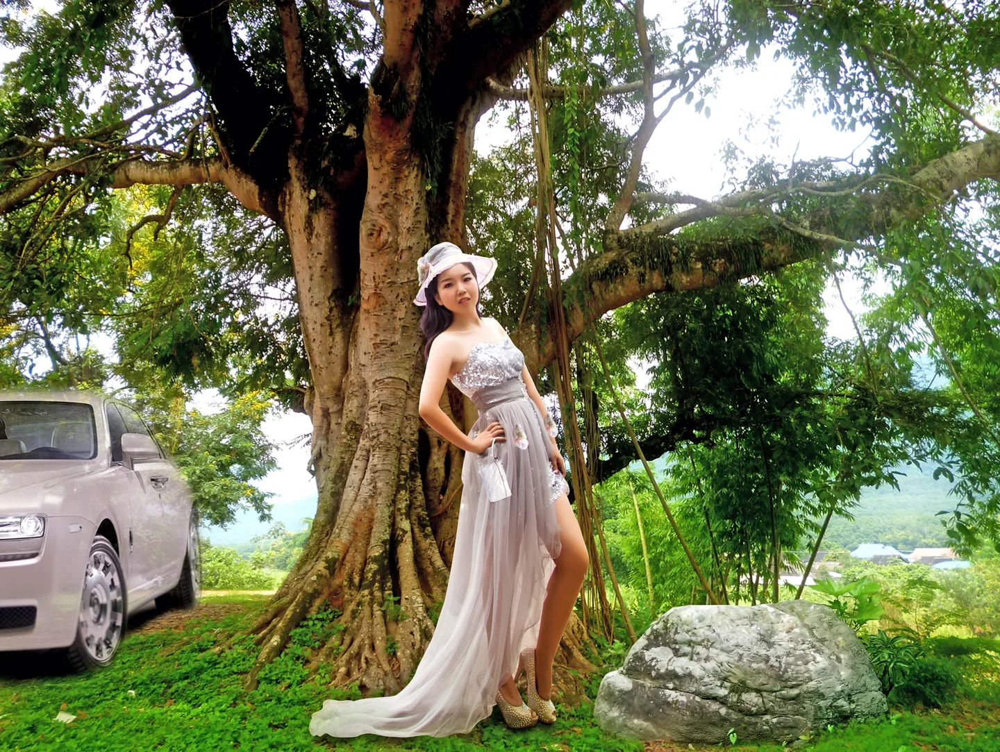 拎着小包,戴着遮阳帽,看来是出来郊游的~