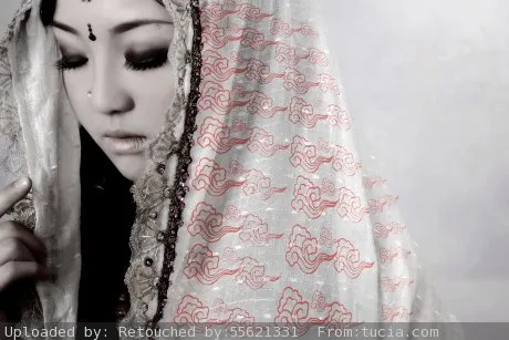 整体黑白灰效果··在白色头巾上加上奥运火炬上的红色圈圈图案~··就只有圈圈是红色的哦~~万分感谢。黑白灰效果就按我提供的图的样式p~~