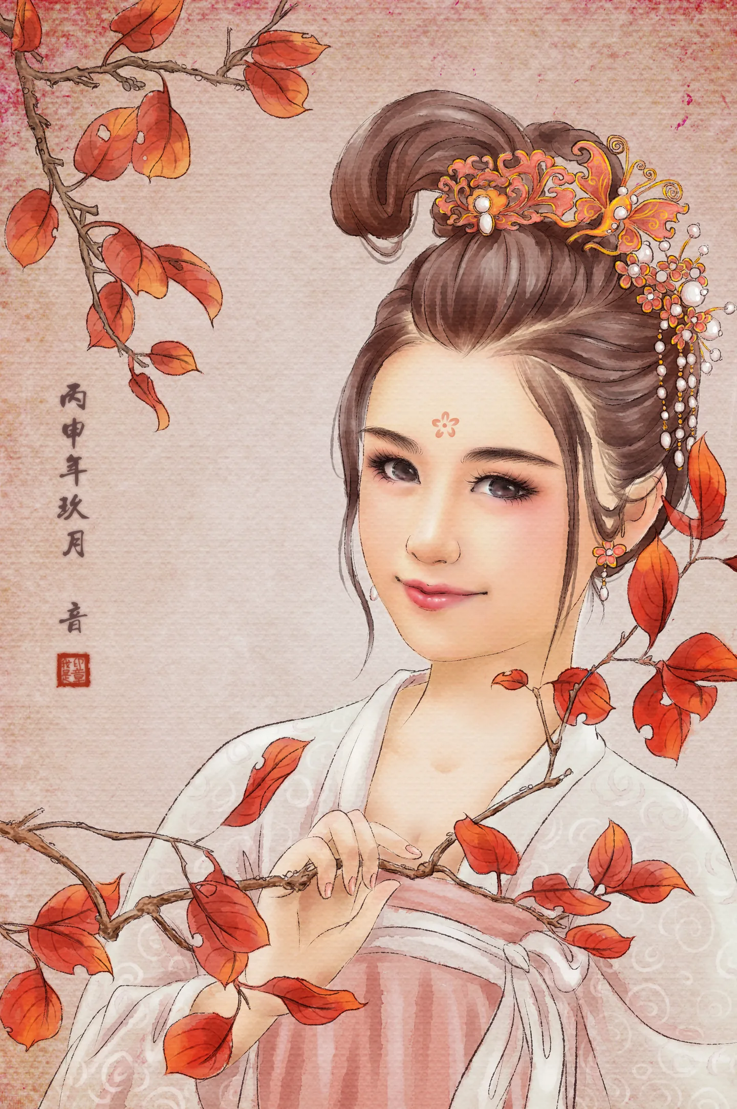 头上那好像是蝴蝶,有参考图的,印章 其实跟你第一次猜的是同一个