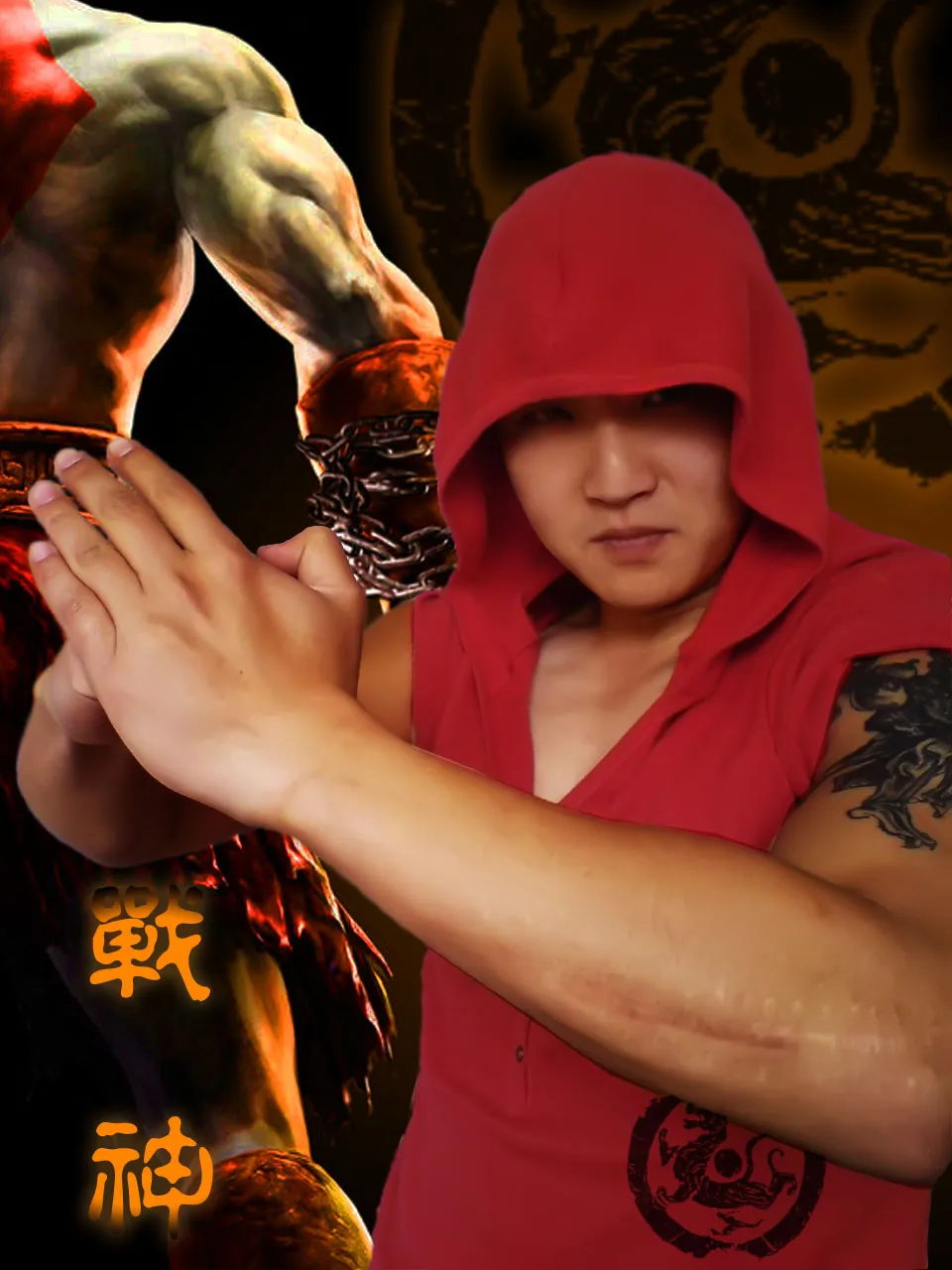 这照片显的我手臂很粗,那就麻烦设计师给我做的孔武有力一点吧。背景就麻烦你们了。我是内蒙人,当然是希望有我们蒙古铁骑的范了~~~谢谢了,上一次传的照片就被忽略了。这次不要了! 基调:严肃冷酷