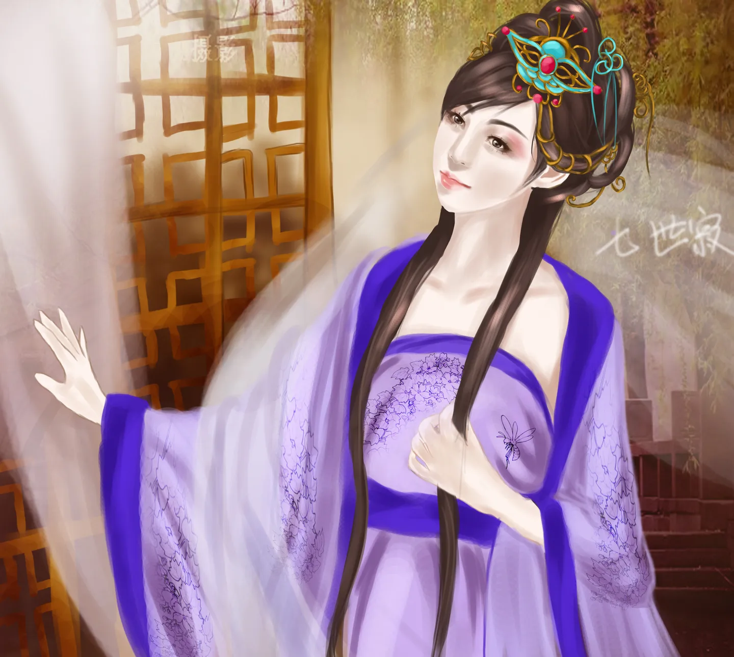求大手术,手绘风~脸型左边修好看一点,背景换掉,换个大一点的背景~古典风华丽风都可以~自由发挥吧~想变成言情小说封面的风格~~唯美呀唯美~~请救救这张烂片吧。 美化人物脸部 换一个好看的背景 基调:典雅唯美 艺术化:深度艺术化