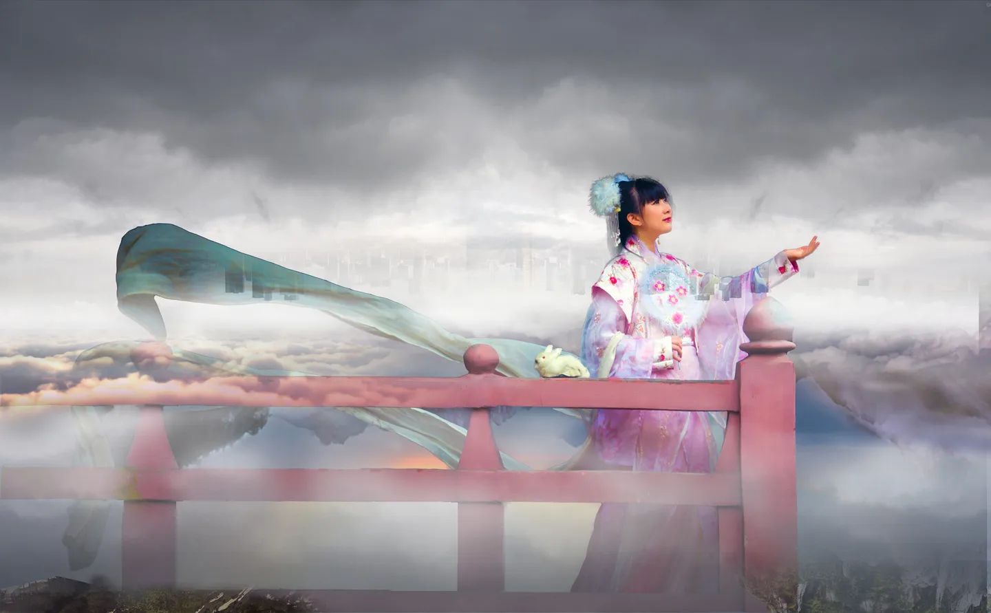 冷色调的云彩,烘托寂寞广寒宫的氛围。