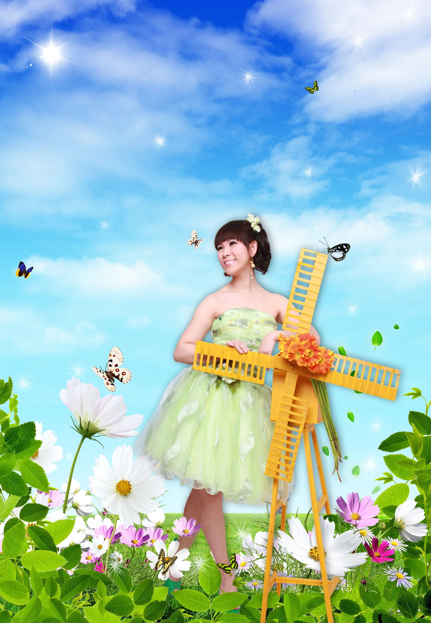 求各种合成, 换一个好看的背景 基调:欢悦明快的