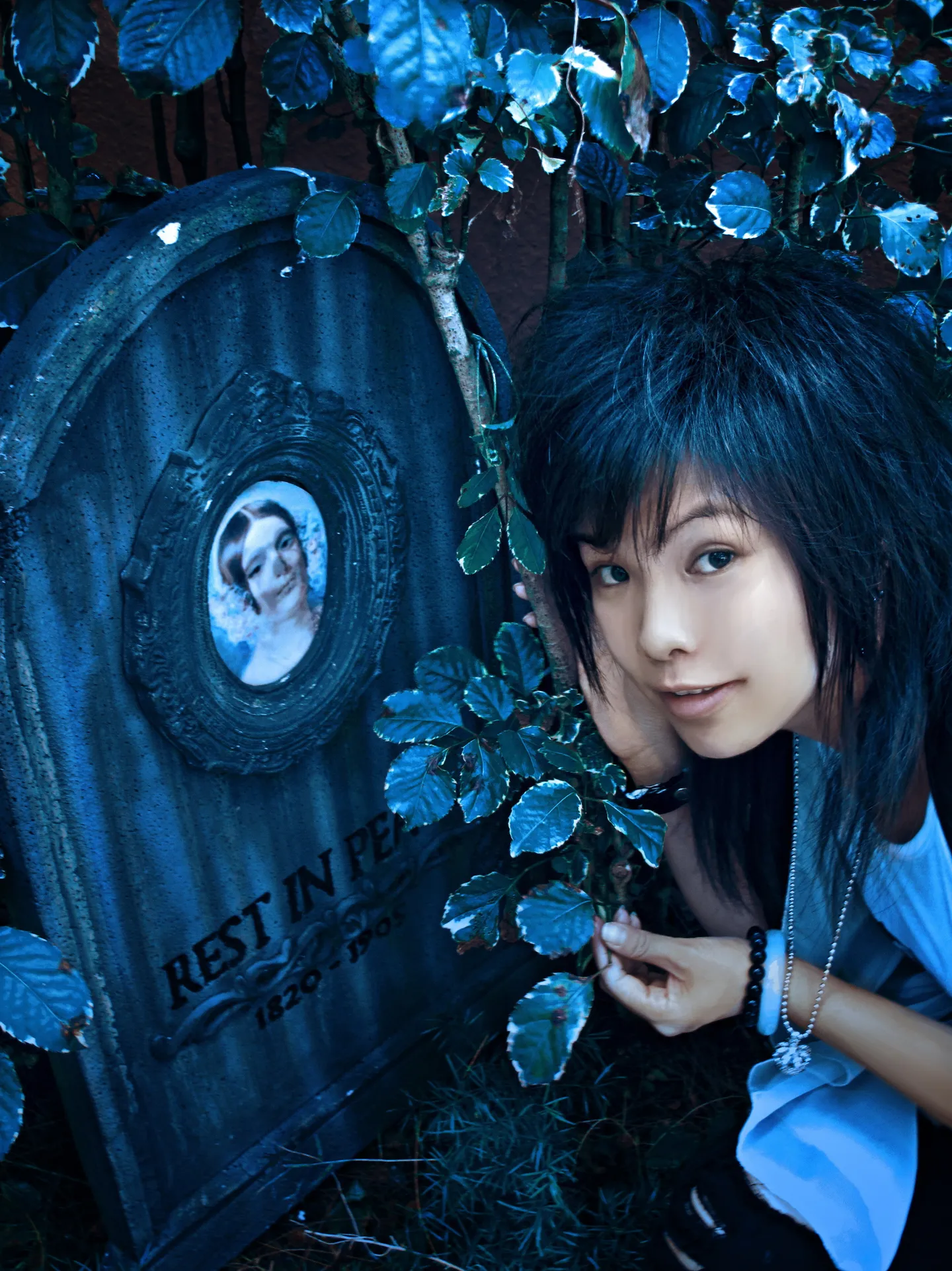 林檎 第一次找你P圖,希望你能接~ 這張是我在海洋公園拍的, 萬聖節,好多我最愛的骷髏頭,骷髏人, 我喜歡鬼魅.鬼詭的感覺~~ 拜託了林檎 ~~辛苦你了!! 艺术化:深度艺术化