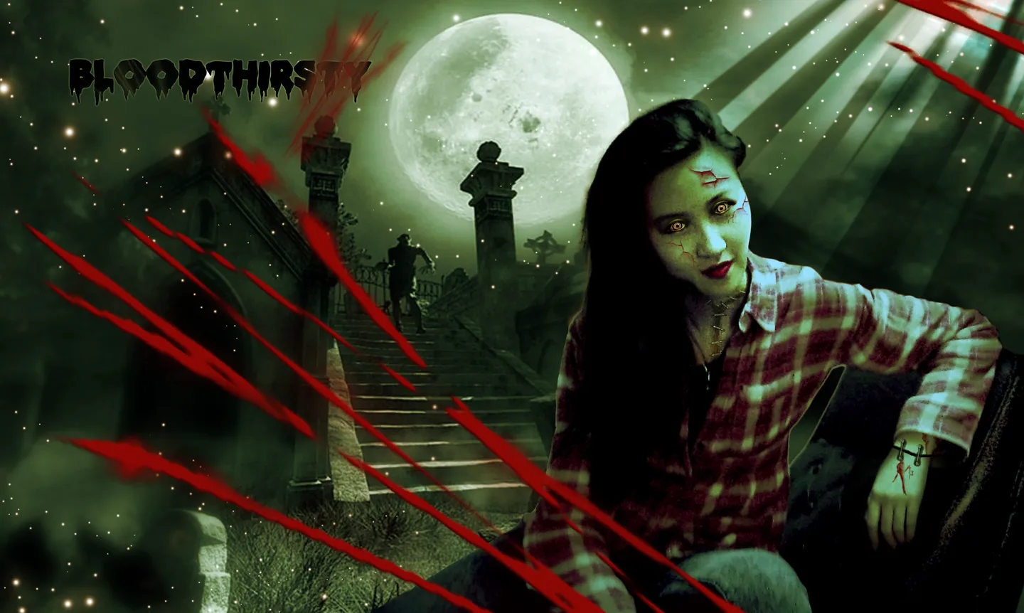 脸有点大~两边能弄小点不? 这个本来想拍出点复古+文艺+吸血鬼,可是都没弄好 能不能帮忙p一下,或者其它感觉都ok~谢谢啦!! 美化人物脸部 换一个好看的背景