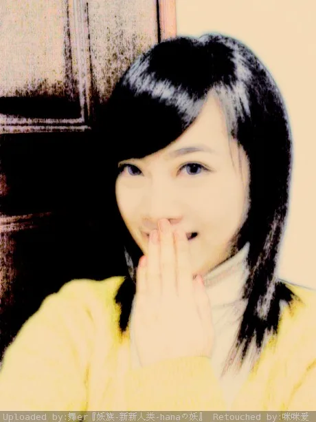 请大师们帮我做个手绘吧。。想试试看那样的风格~谢谢啦~五官就不用太动啦~手手弄的漂亮点~嘿嘿~ 多谢多谢~ 背景:稍作调整 艺术化:轻微艺术化