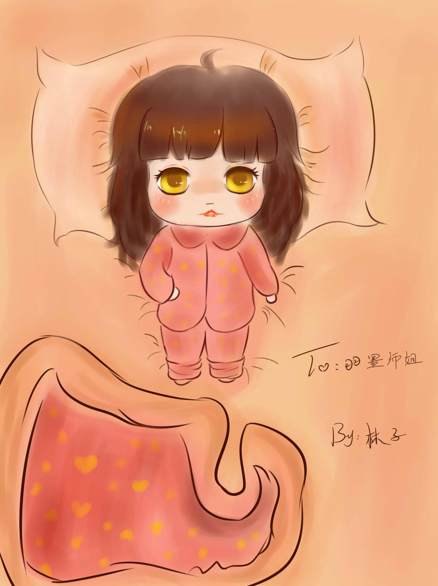眼睛咕噜噜的,真有灵气,萌的不要不要的,可不可以帮木木也画一张呢?