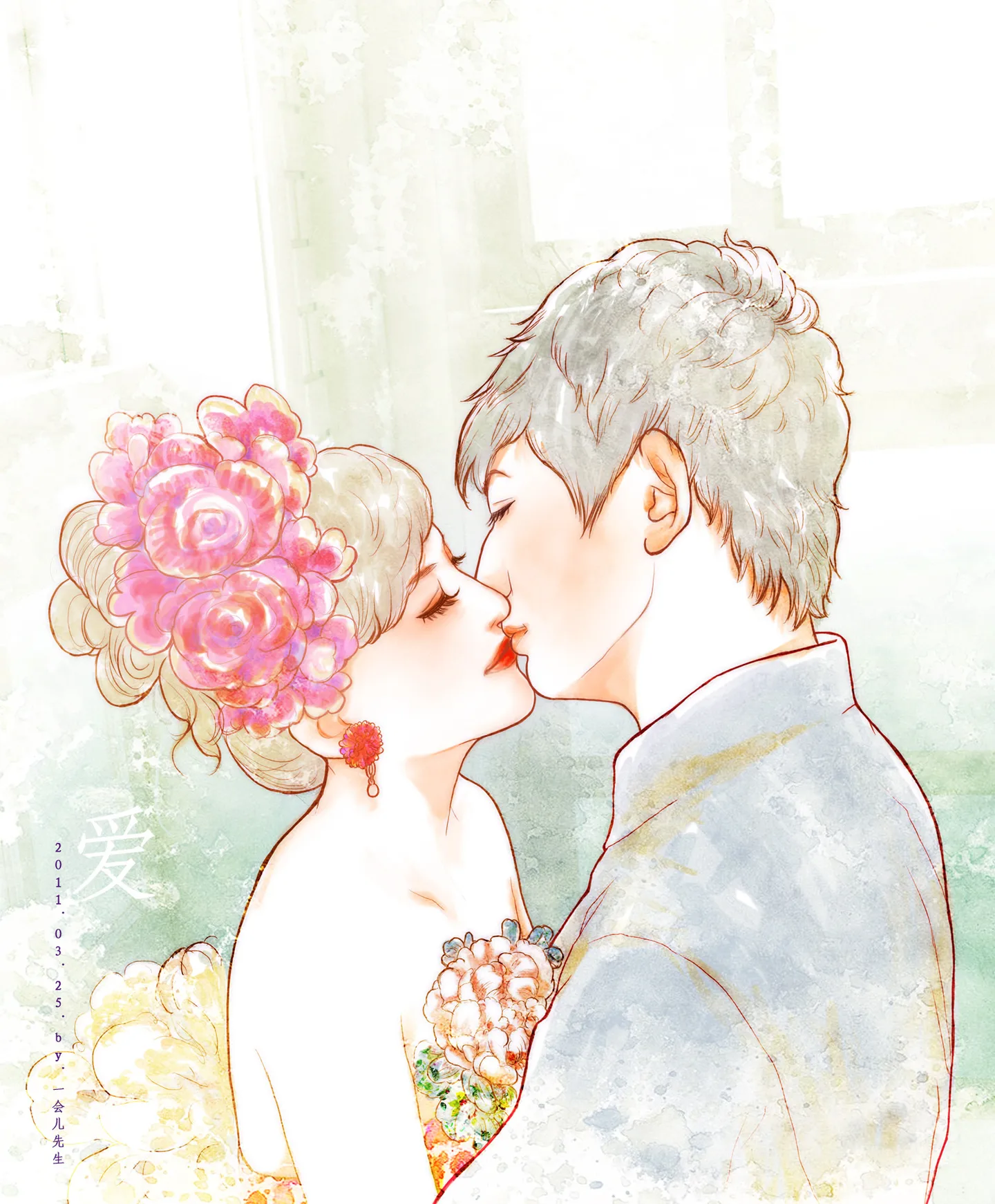 早就想画一幅情侣图的说. 一下子就看中这张图了. 原图给人感觉超幸福的.真羡慕.