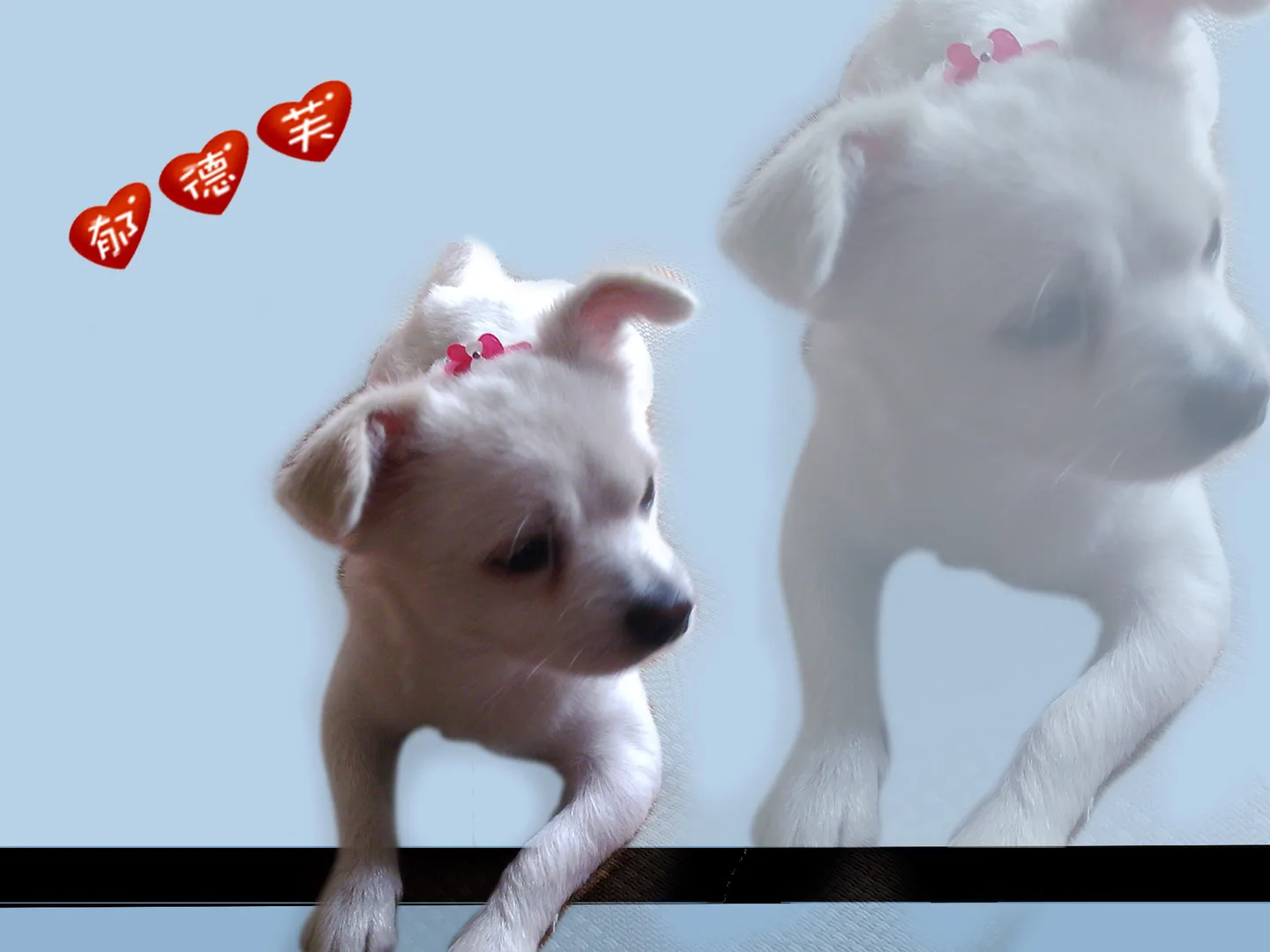 哈哈,和我家点点好像哦,就是我加点点的耳朵是竖起来的。