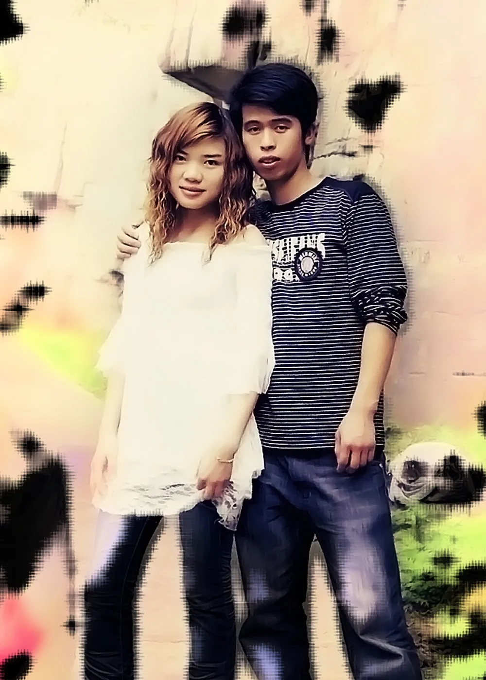帮帮忙!要突出人物,背景可以模糊点,颜色你看着办,要显出两人的亲密感
