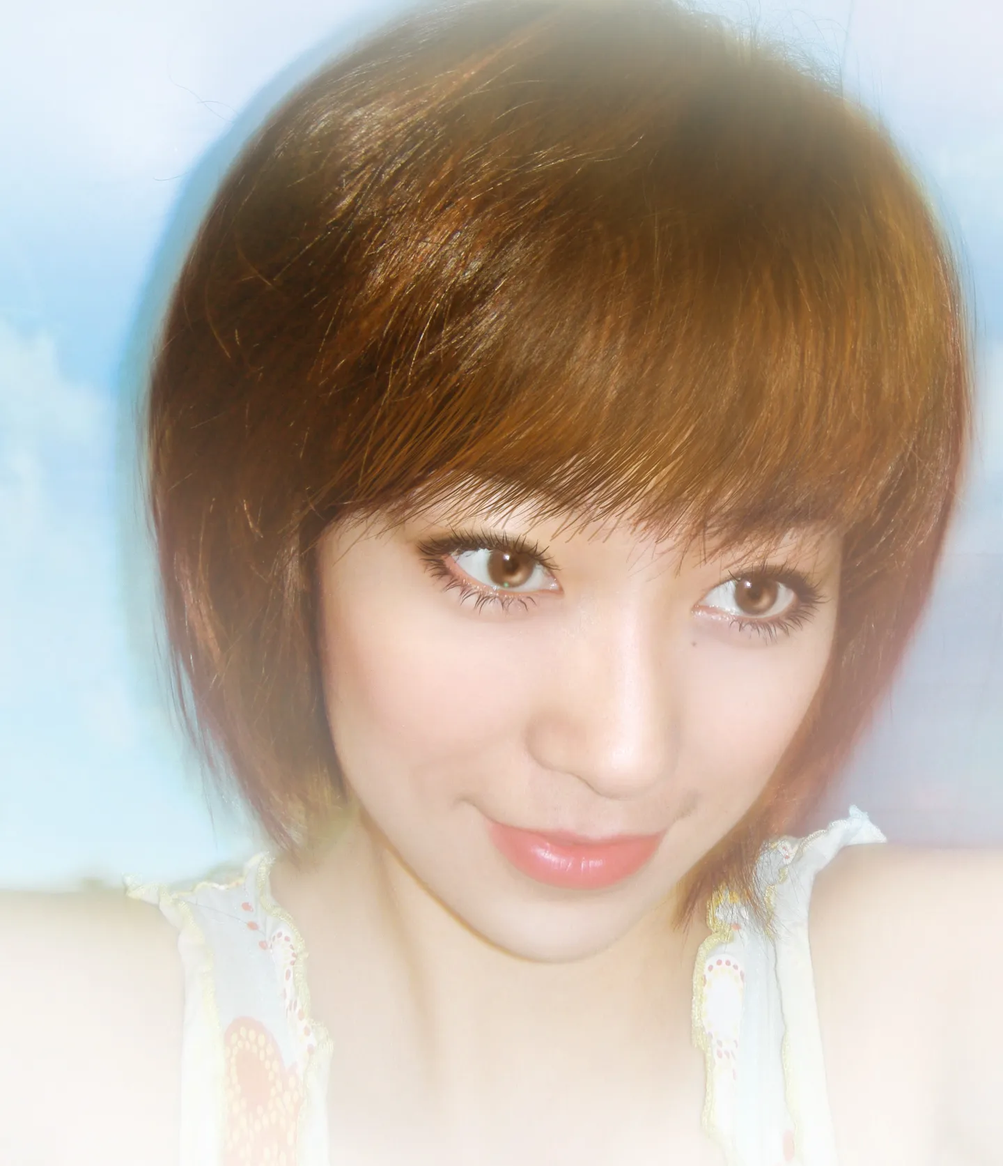 女皇开指定啦,请做一张吧,谢谢啦,希望能接哦^^ 可不可以帮我换一下背景,还有睡衣的肩带也看看怎么处理吧,怎么漂亮怎么弄吧,交给你啦,么么 给人物换一个好看的背景 美化人物脸部 艺术化:轻微艺术化