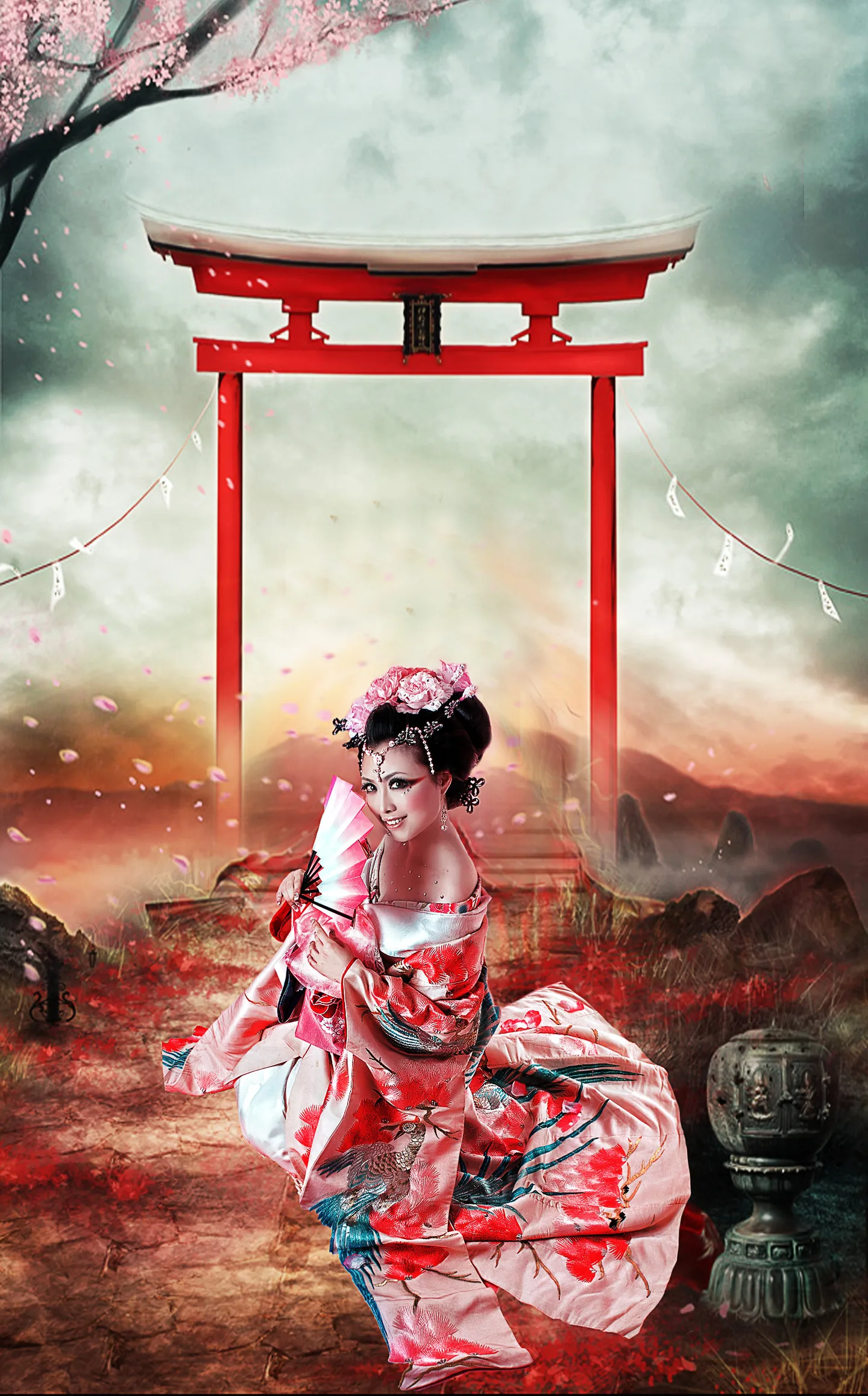 风格很美,透视好像有点。。。如果加上影子更自然~~