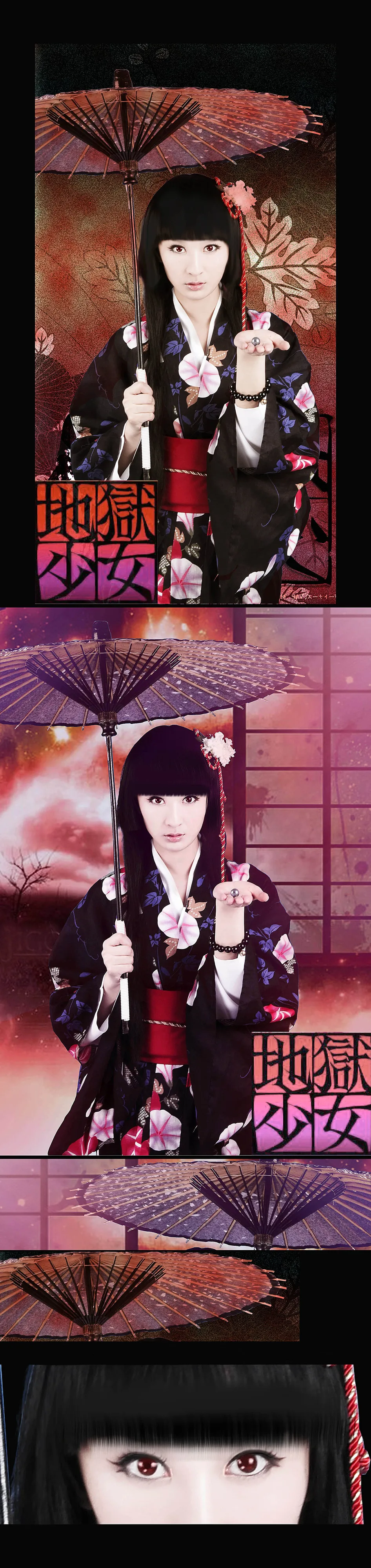COSPLYA的是地狱少女 皮肤PS白点 柔和点 总之越美越好 给人物换一个好看的背景 美化身材/体型 美化人物脸部 用途:娱乐 艺术化:深度艺术化 基调:严肃冷酷