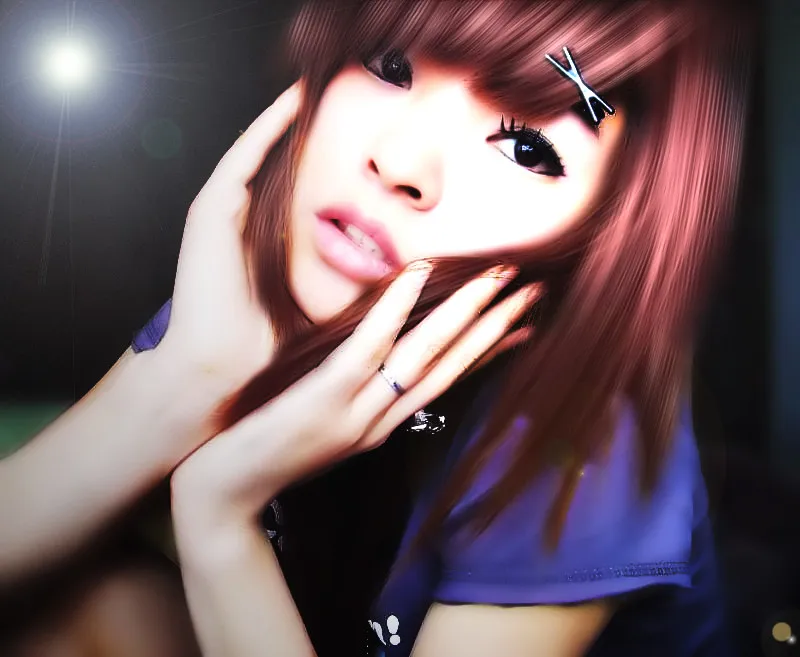嘴唇变饱满,放亮闪光,眼睛加上下睫毛!瞳孔颜色可否也变下呢?整体看起来颜色更舒服吧`!加油拉`!